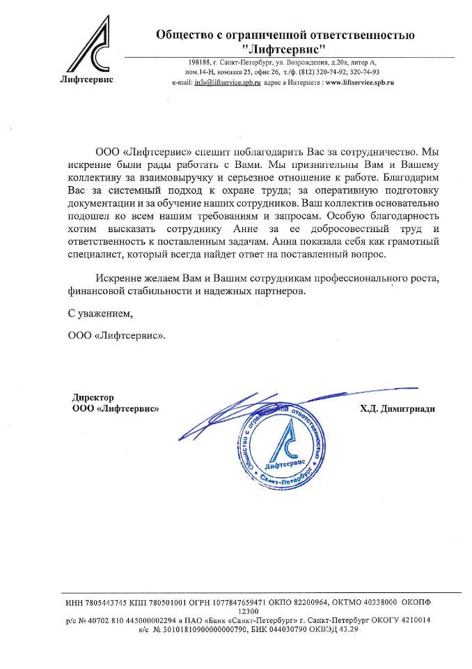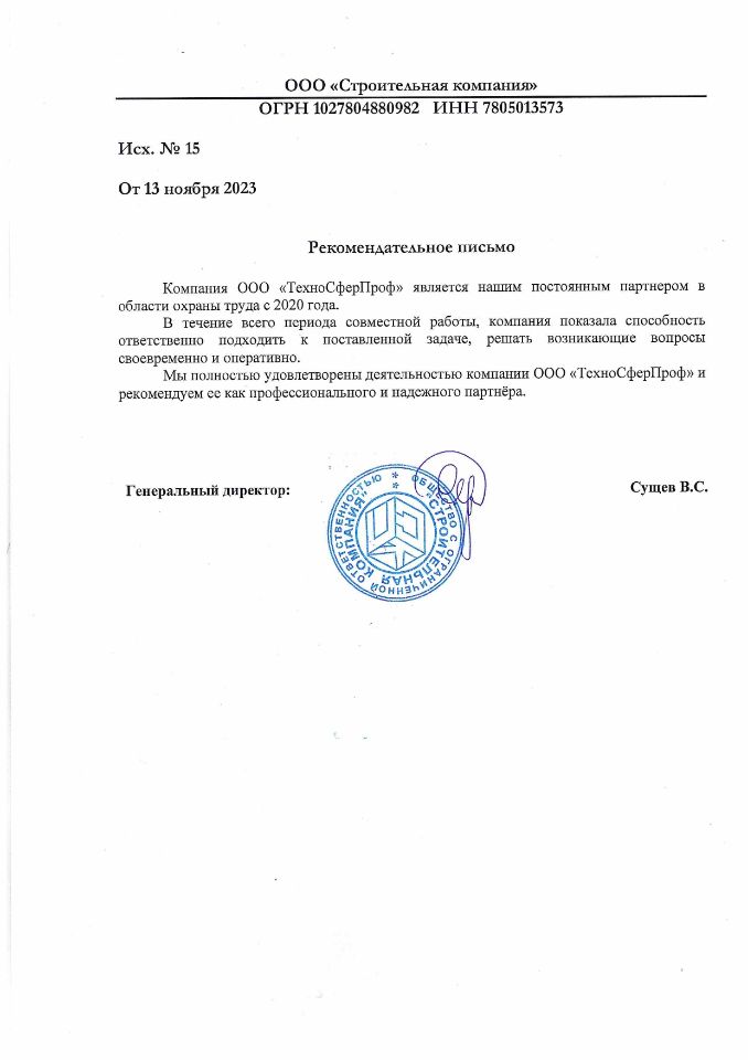 Имеем в штате опытных специалистов, которые прошли множество проверок контролирующих органов в области охраны труда.