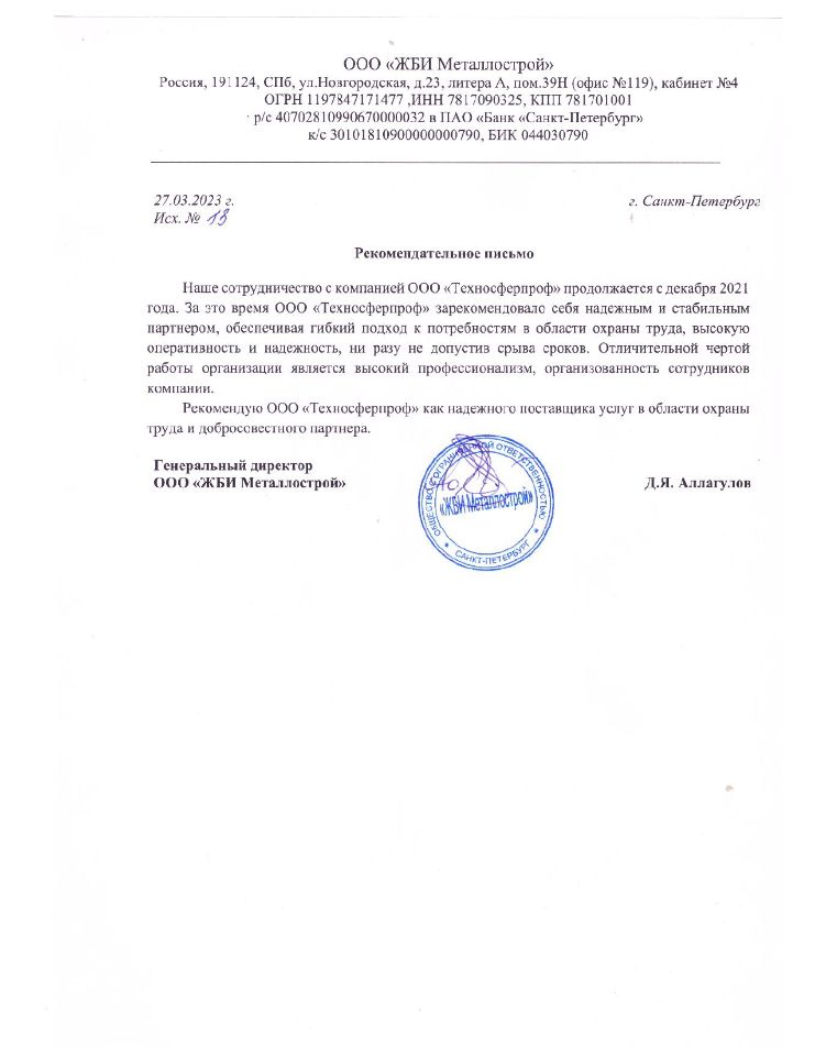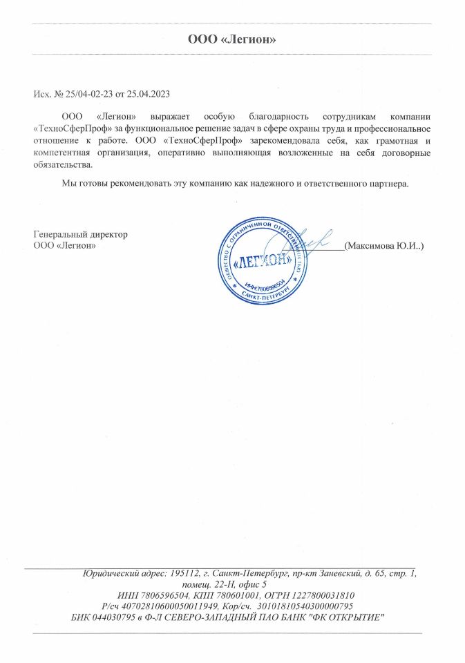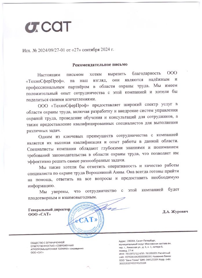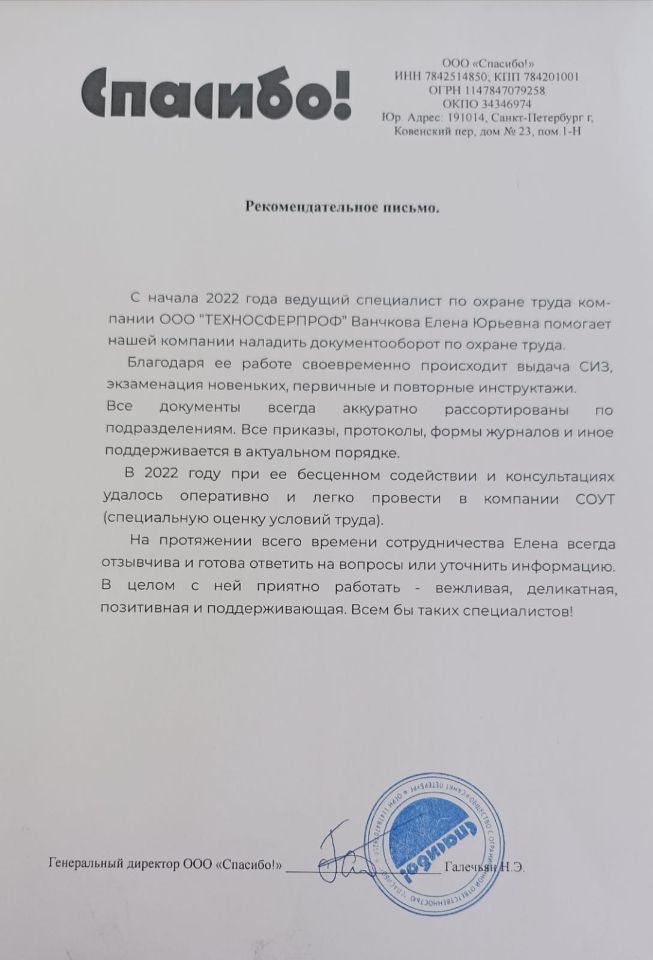 Имеем в штате опытных специалистов, которые прошли множество проверок контролирующих органов в области охраны труда.