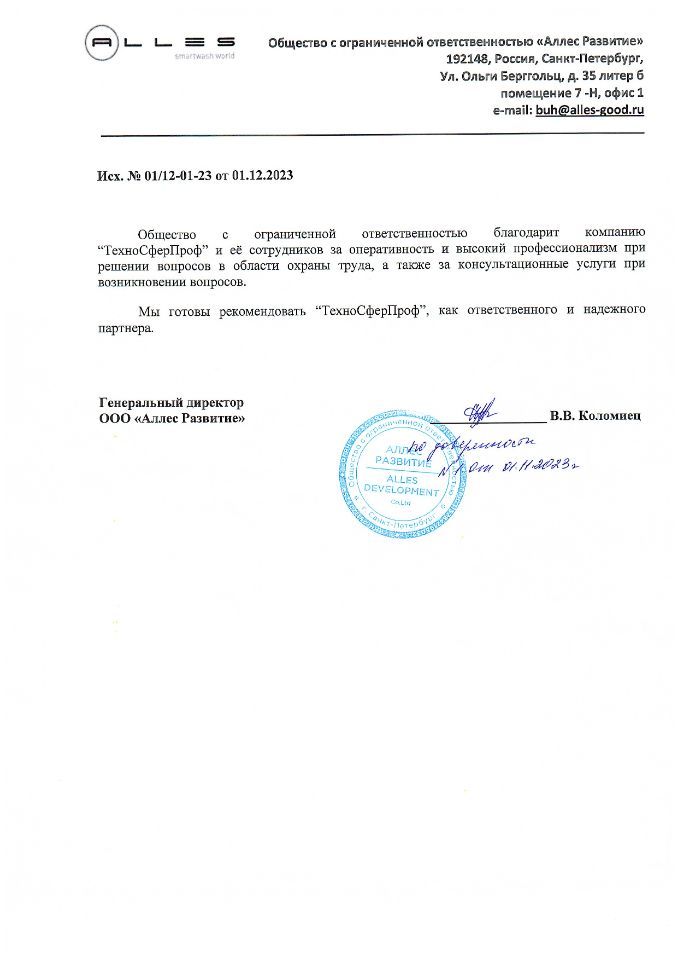 Компания ООО «ТехноСферПроф» владеет собственным Учебным центром, имеющим Лицензию Комитета по образованию Правительства Санкт-Петербурга за номером Л035-01271-78/00176761 от 03.06.2021 г.