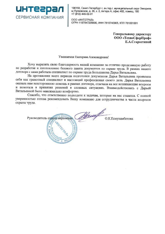 ООО "ТехноСферПроф" - один из ведущих поставщиков услуг в области охраны труда, пожарной безопасности и обучения персонала в Северо-Западном Федеральном округе. Мы не занимаемся экологией, кадровым и бухгалтерским сопровождением, сертификацией продукции. Мы специализируемся на охране труда и делаем это хорошо.